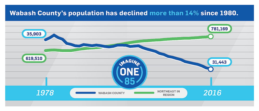 Do you care about these issues and want to get involved? On July 14 the Steering Committee will host an event to explore the challenges and potential of Wabash County. The Imagine One 85 Growth Summit will be a unique and interactive moment for community members to share and make a direct impact on their community. The meeting will take place from 6 to 8 PM on the Honeywell Plaza and include food and entertainment highlighting the best of Wabash County. Attendance is free and registration is available on the project website, www.imagineone85.org